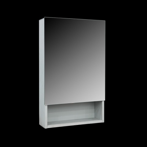Description: * Anodized Aluminium housing * 6mm Double Side Mirror Door (3mm + 3mm mirrors) * With soft close hinge * 2 Adjustable safety glass shelves